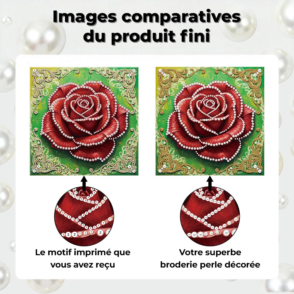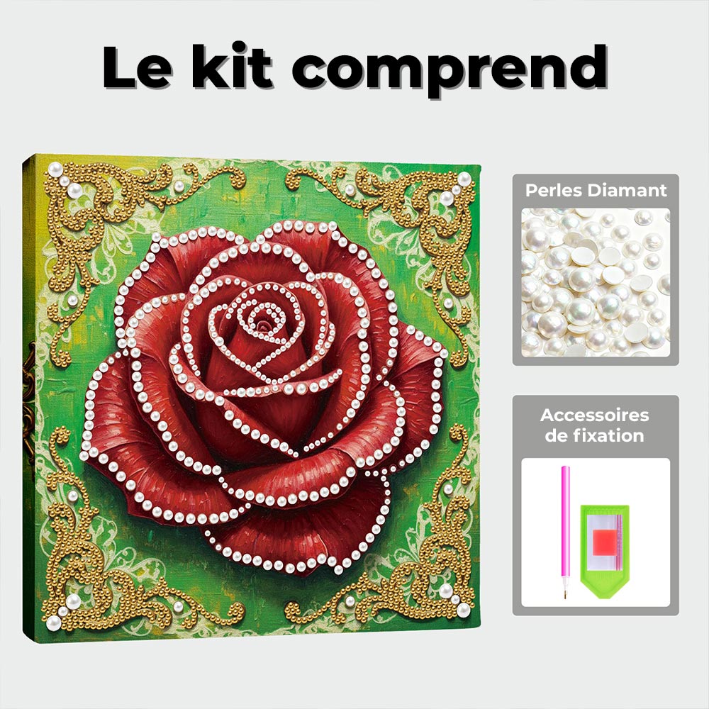 Broderie Diamant | Broderie Perle | Une Rose Rouge en Pleine Floraison