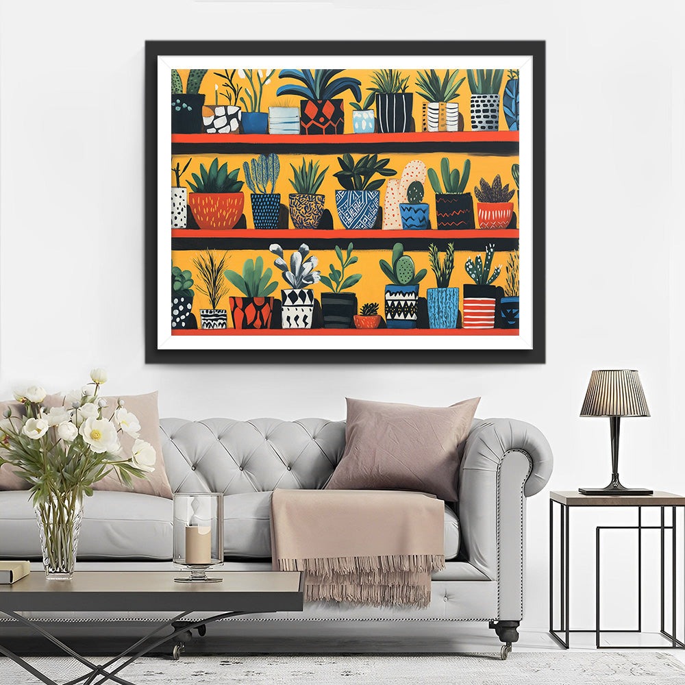 Divers Plantes Vertes en Pot sur l’Étagère Broderie Diamant