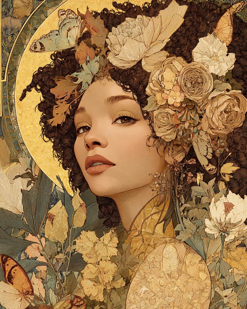 Femme dans les Fleurs d'Automne Broderie Diamant