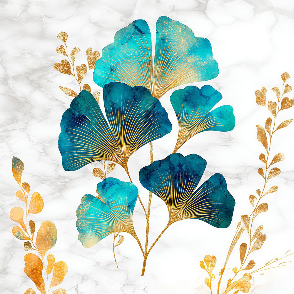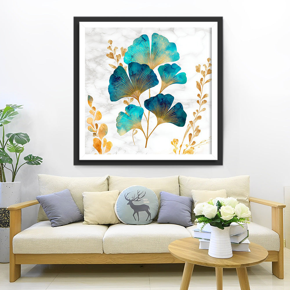 Feuilles de Ginkgo Doré et Vert Broderie Diamant