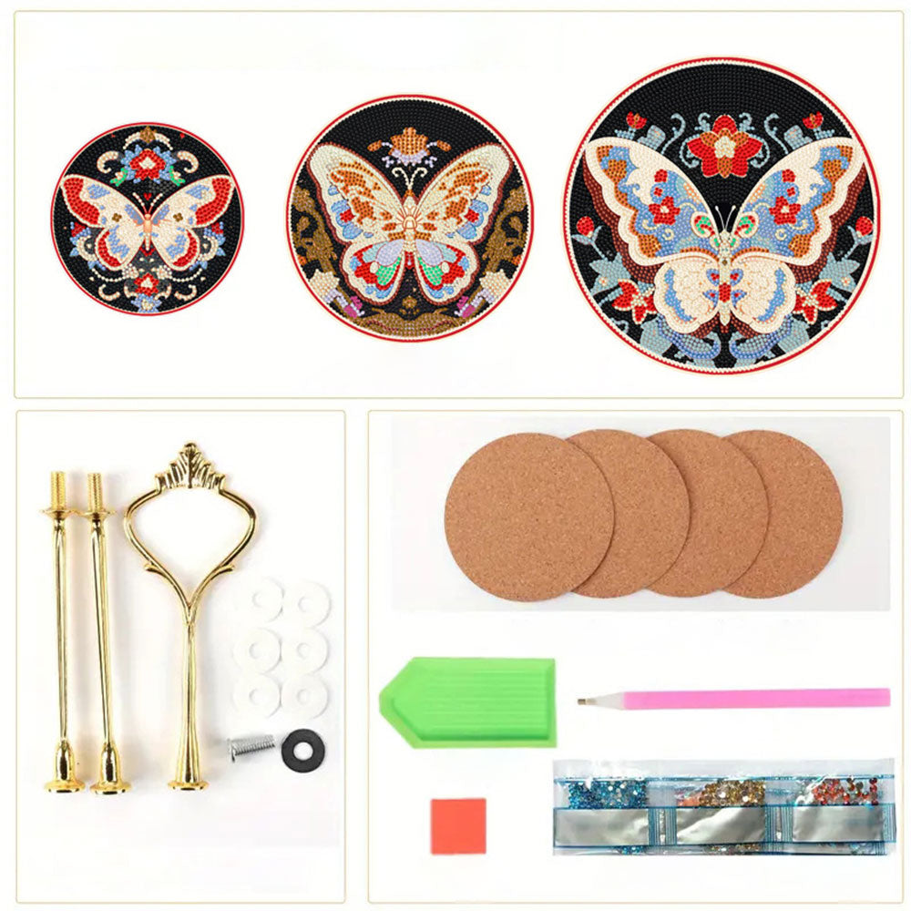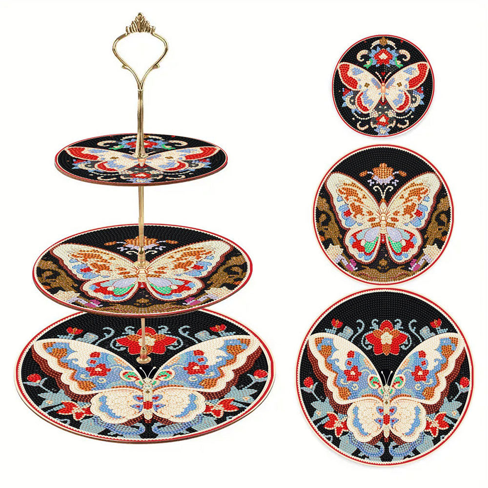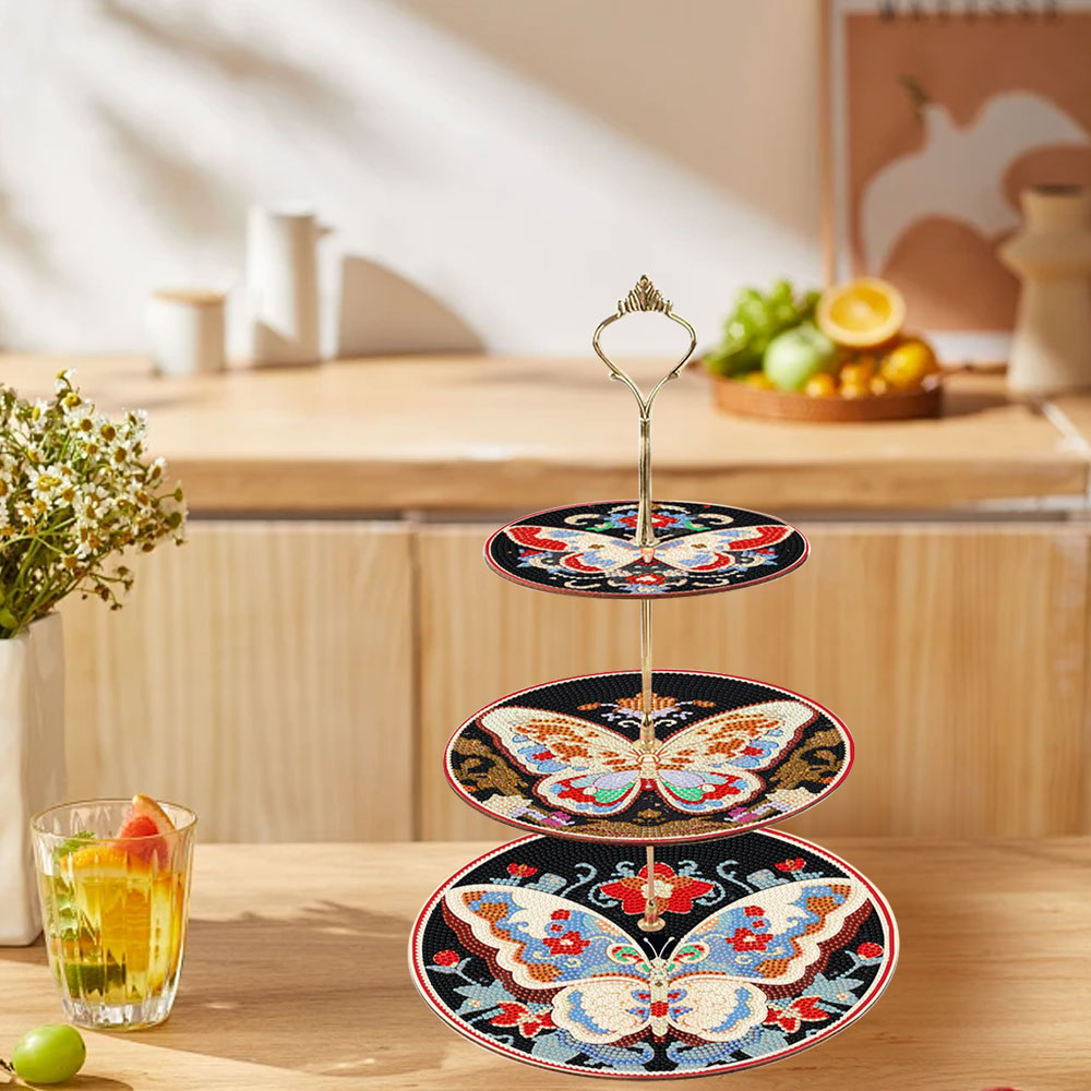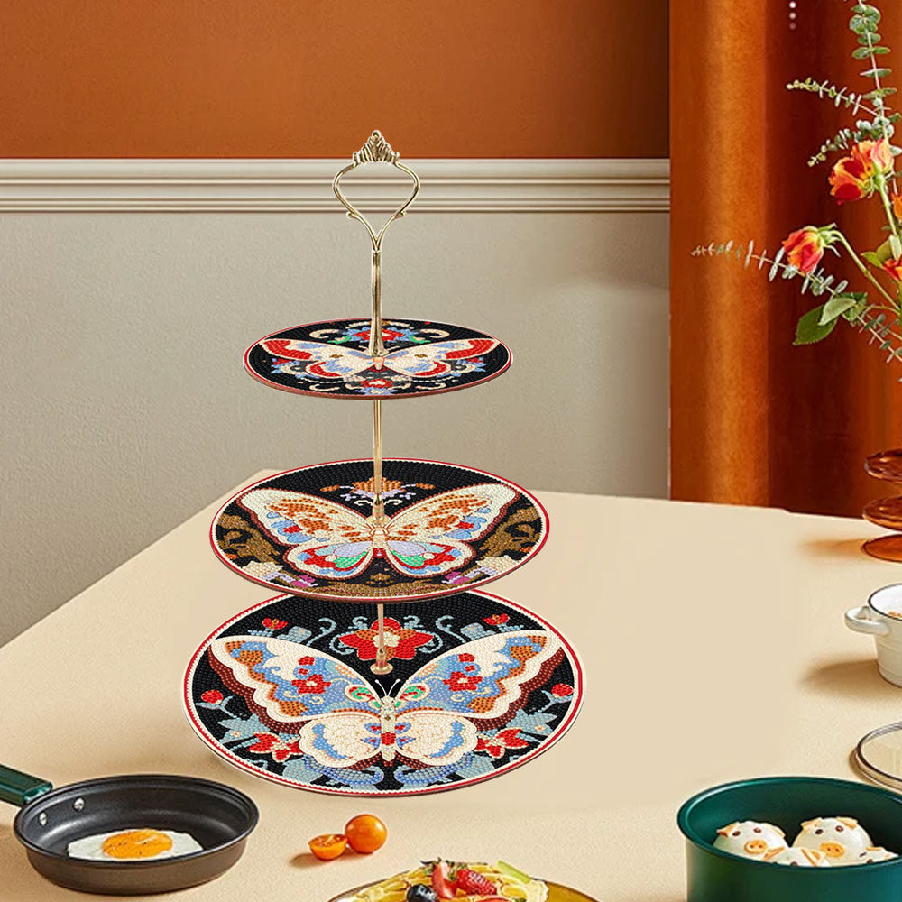 3 Niveaux de Plateau de Service Acrylique Papillon dans l'Obscurité Broderie Diamant