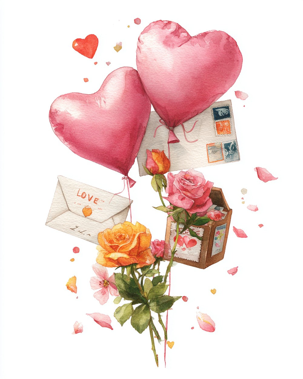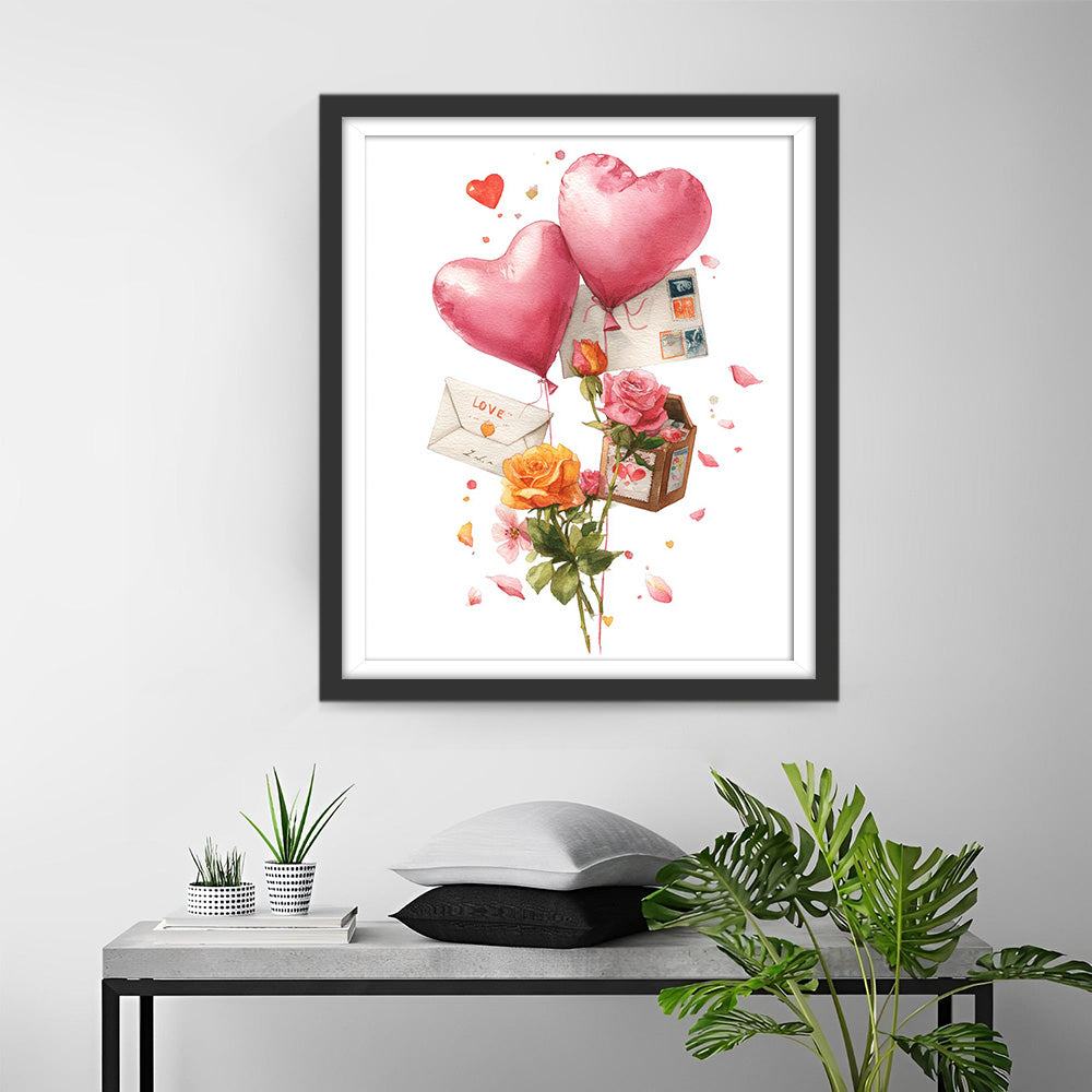 Ballons en Forme de Cœur, Roses et Boîtes-Cadeaux Broderie Diamant