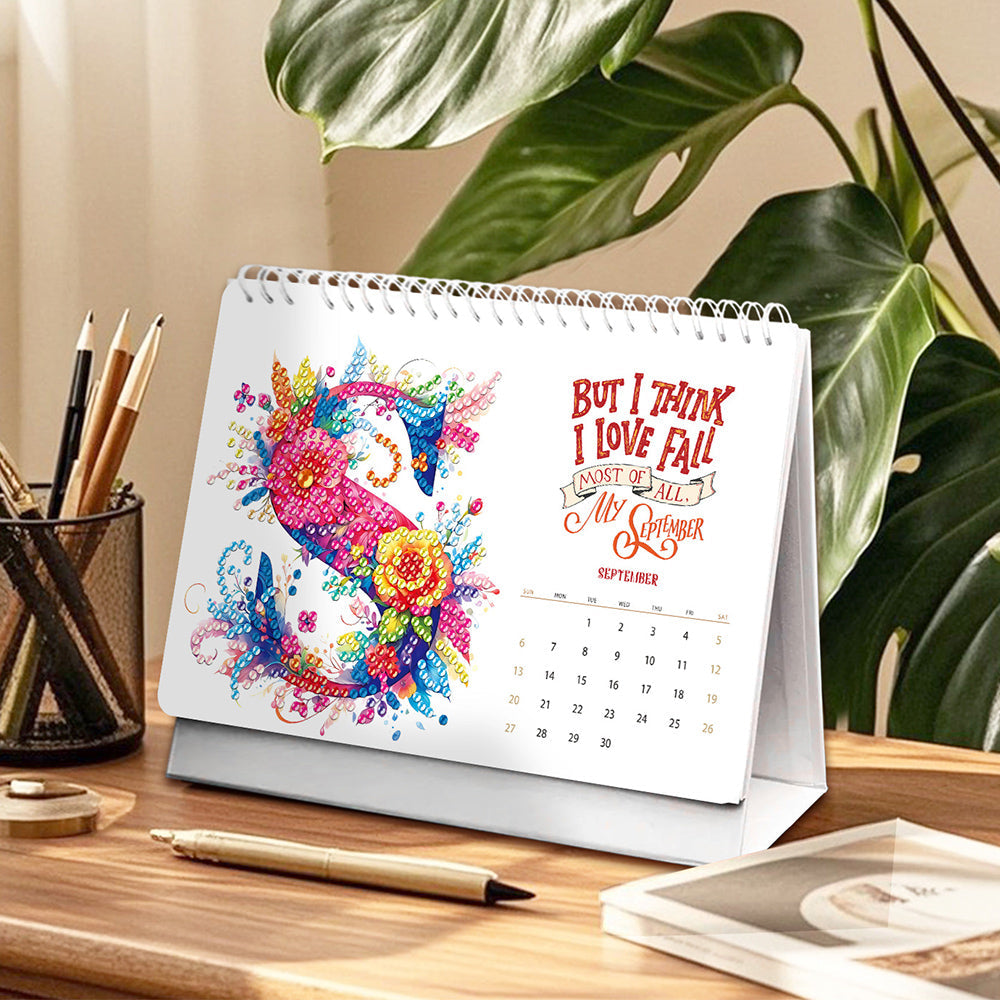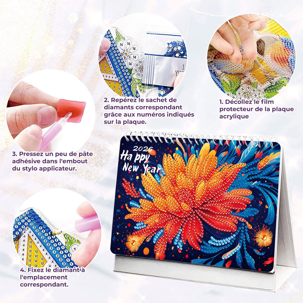 Calendrier de Bureau 2026 Broderie Diamant | Des Décorations Florales Chaque Mois