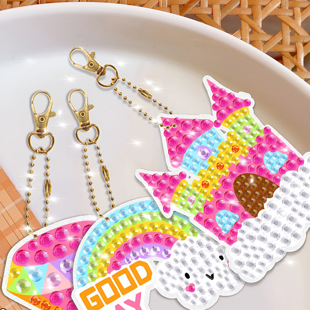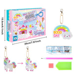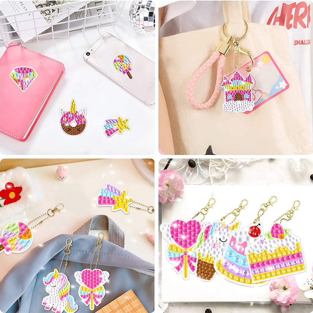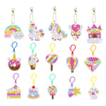 15Pcs de Porte-Clés Acryliques Une Face Licorne Gemme Arc-en-Ciel Enfantine Broderie Diamant