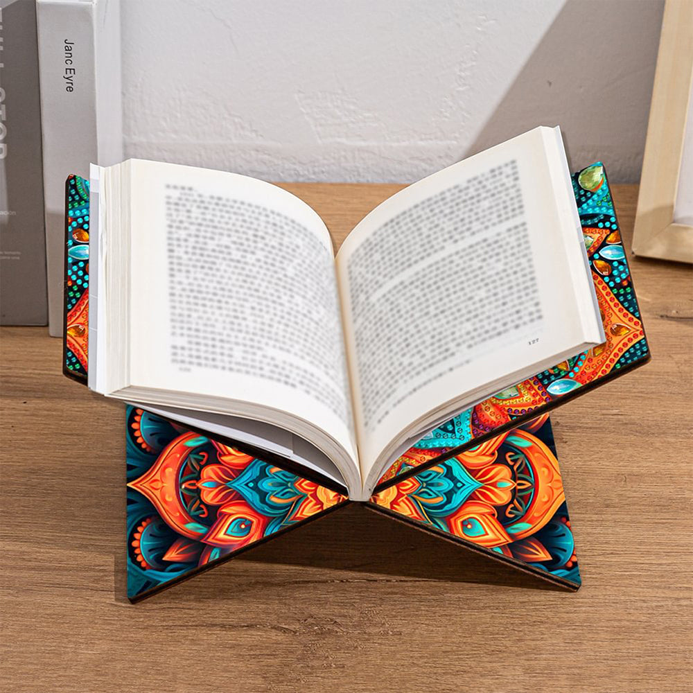 Porte-Livres Mains Libres en Bois Mandala Lotus Broderie Diamant