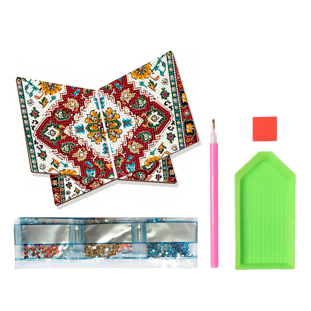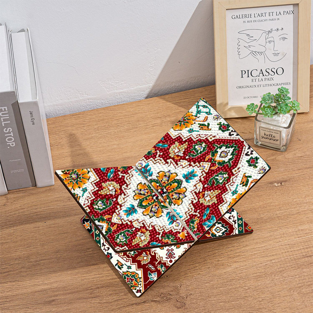 Porte-Livres Mains Libres en Bois Mandala Rétro Rouge Broderie Diamant