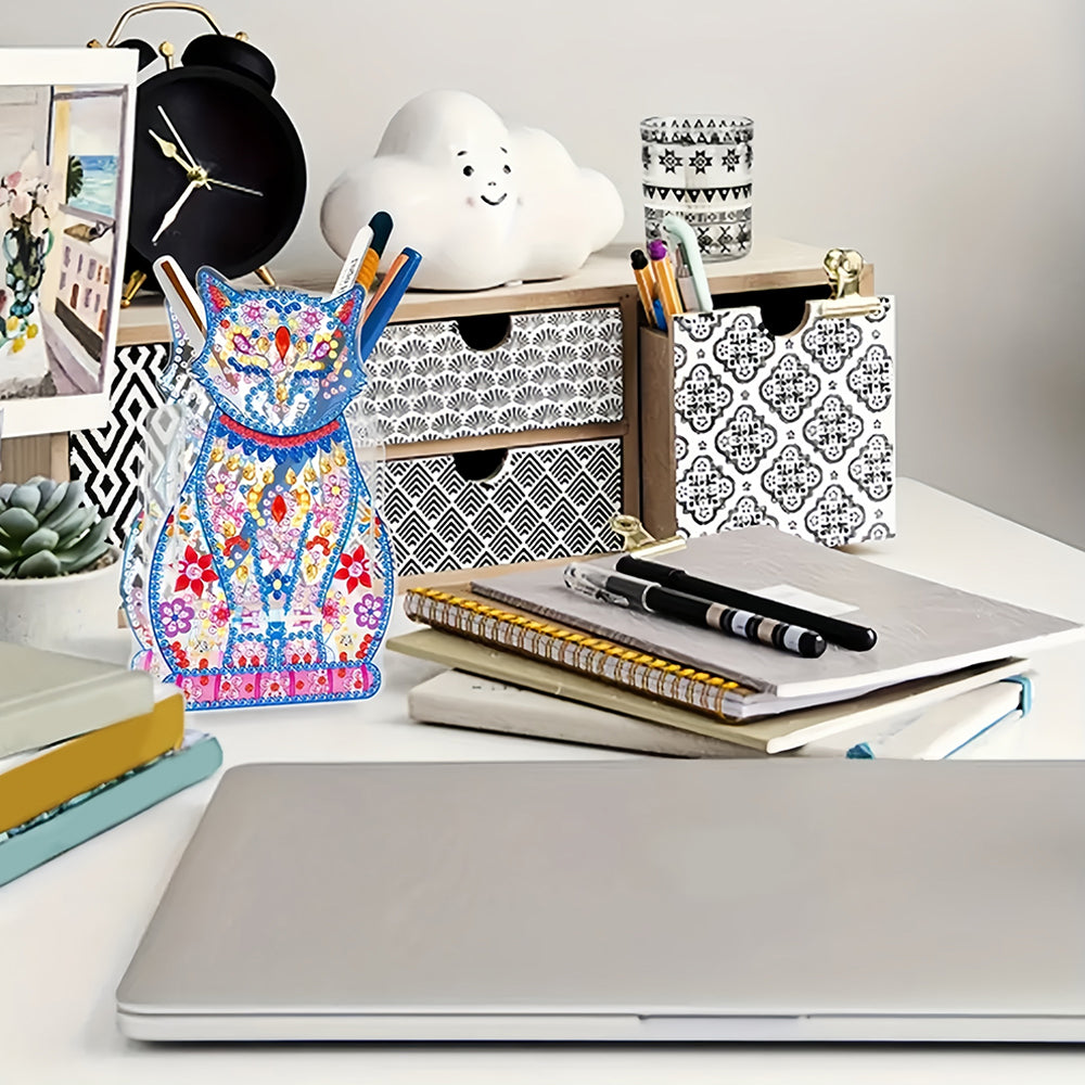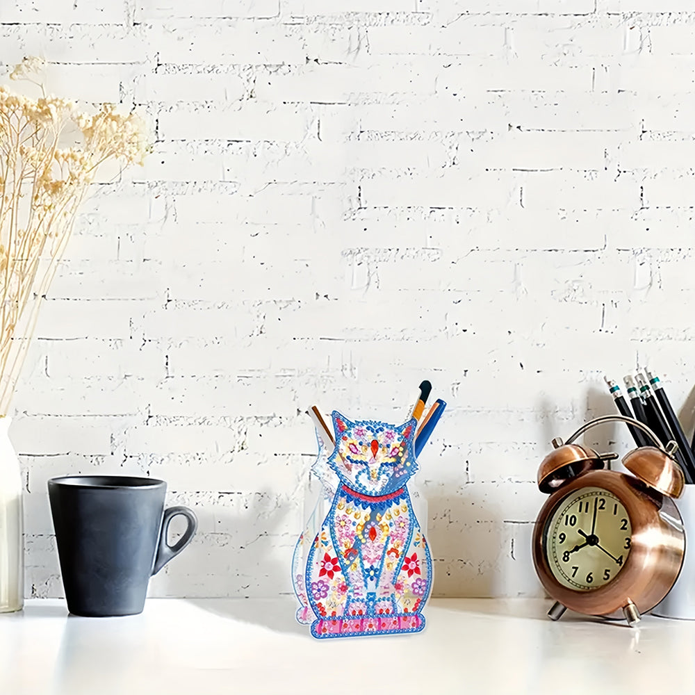 Porte-Stylo Chat Avec Yeux Fermés Broderie Diamant