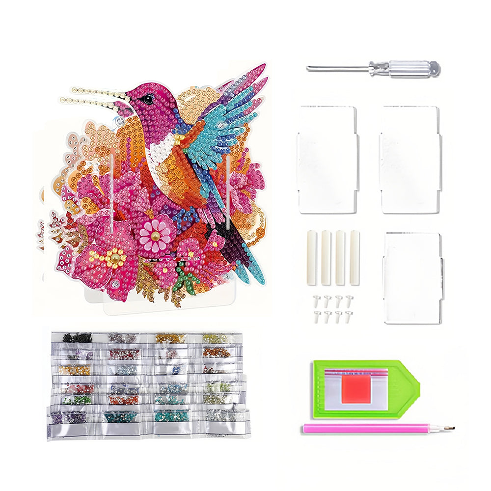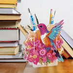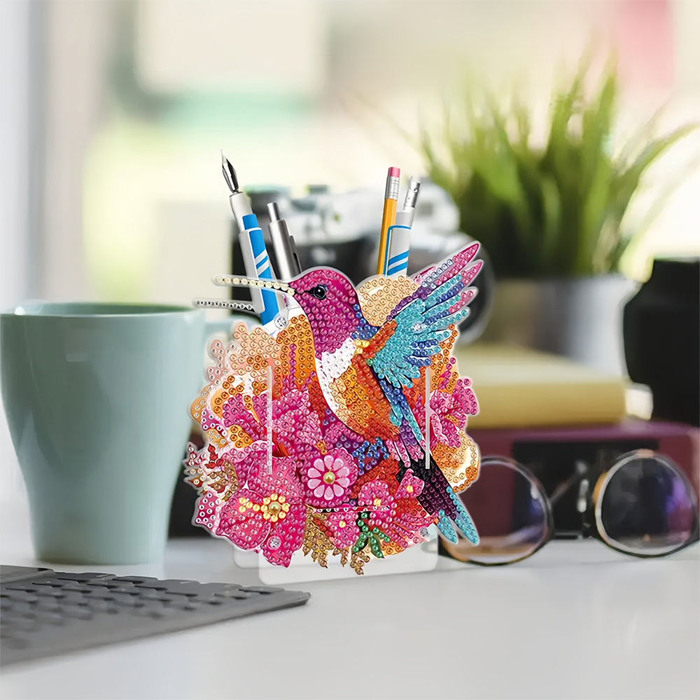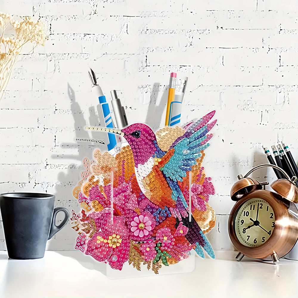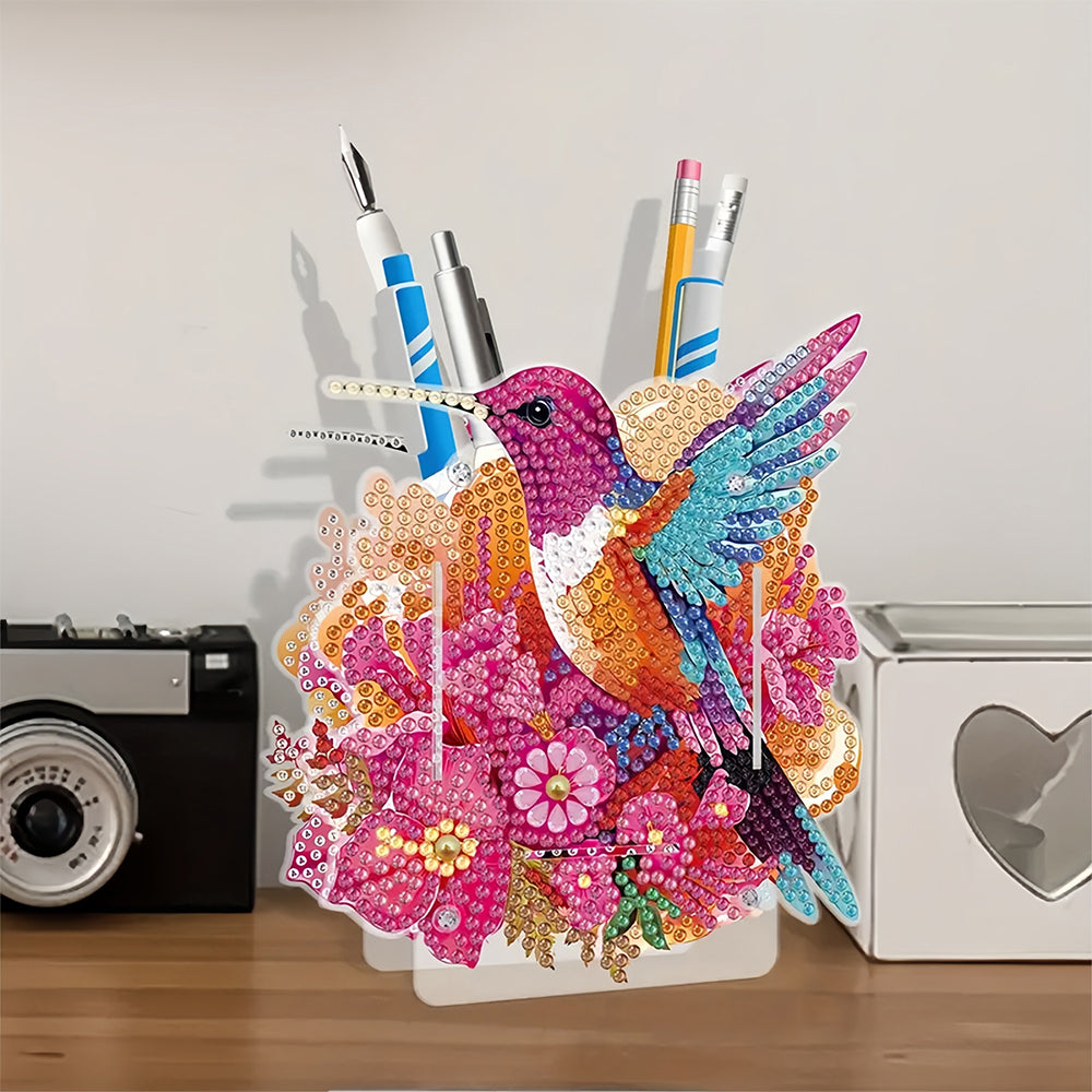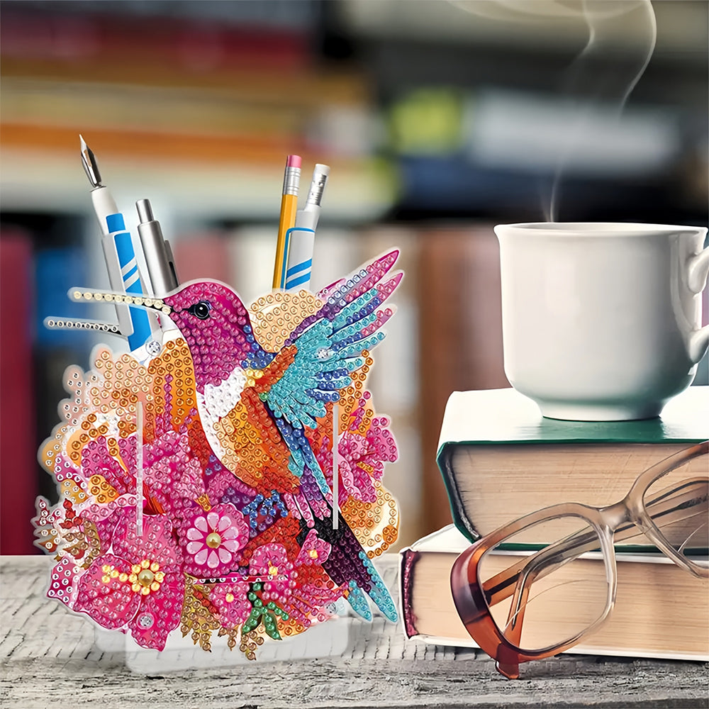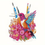 Porte-Stylo Colibri à Fleurs Rouges Broderie Diamant