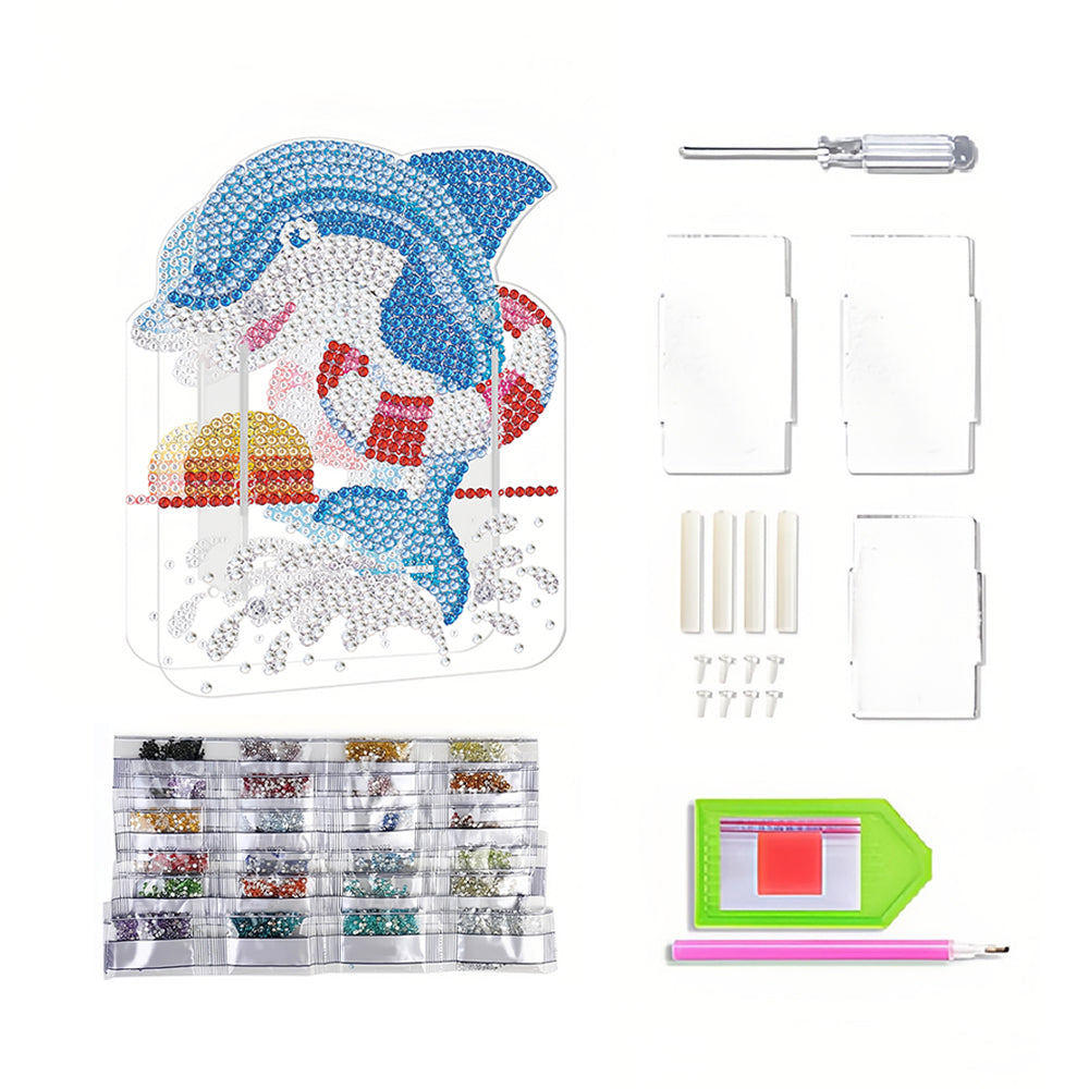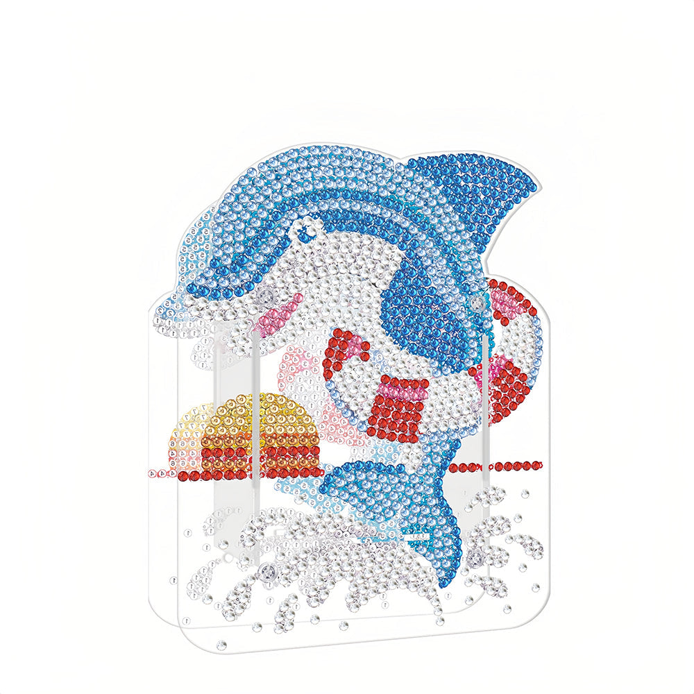 Porte-Stylo Dauphin Bleu Broderie Diamant