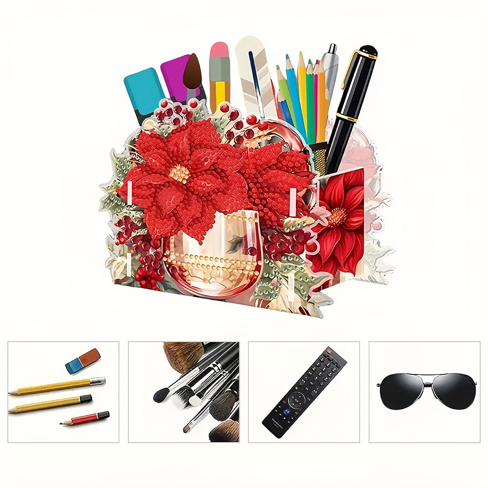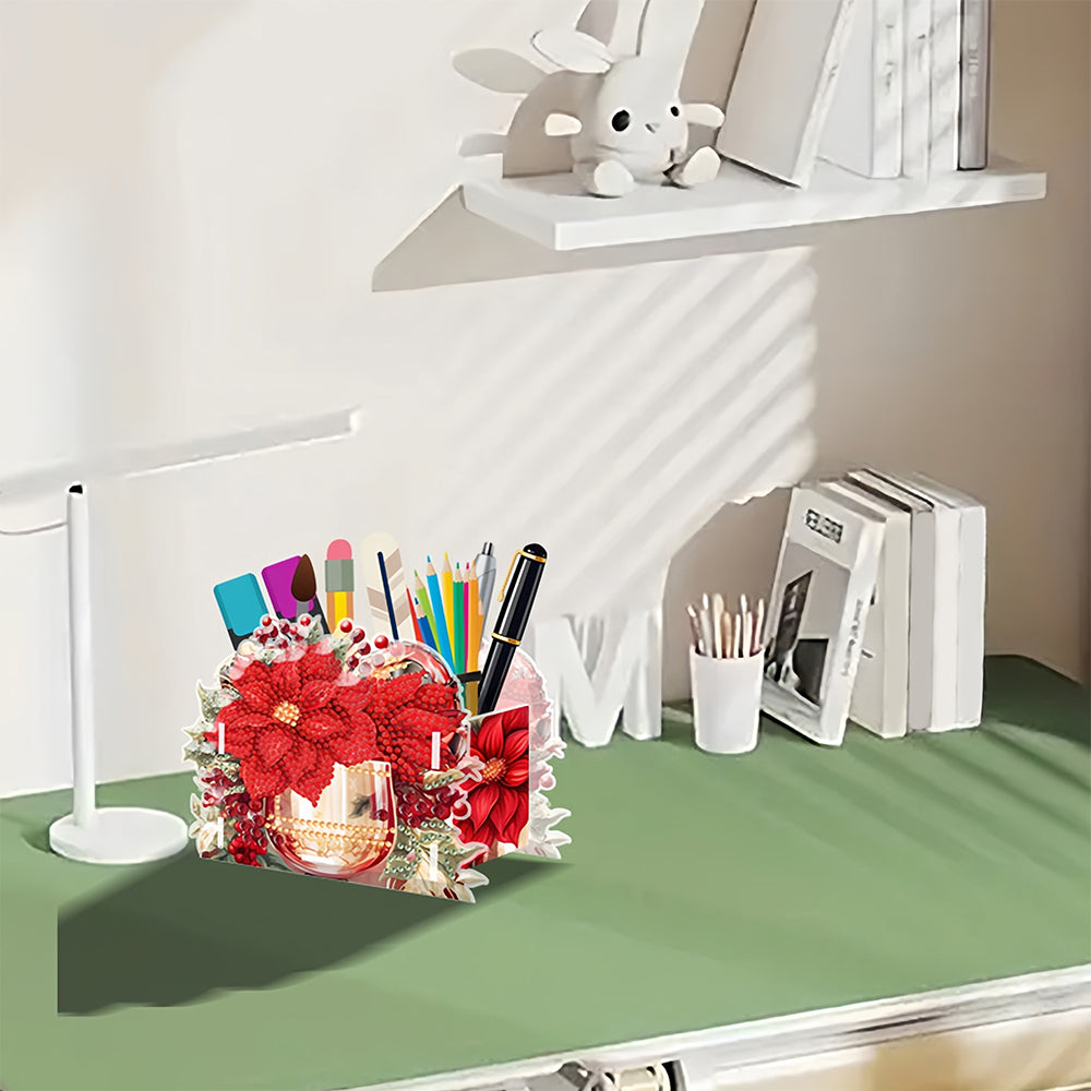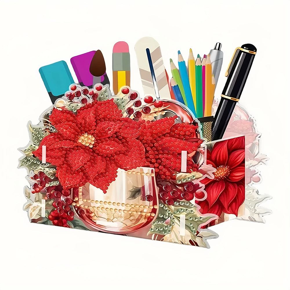Porte-Stylo Fleurs et Baies Rouges Broderie Diamant
