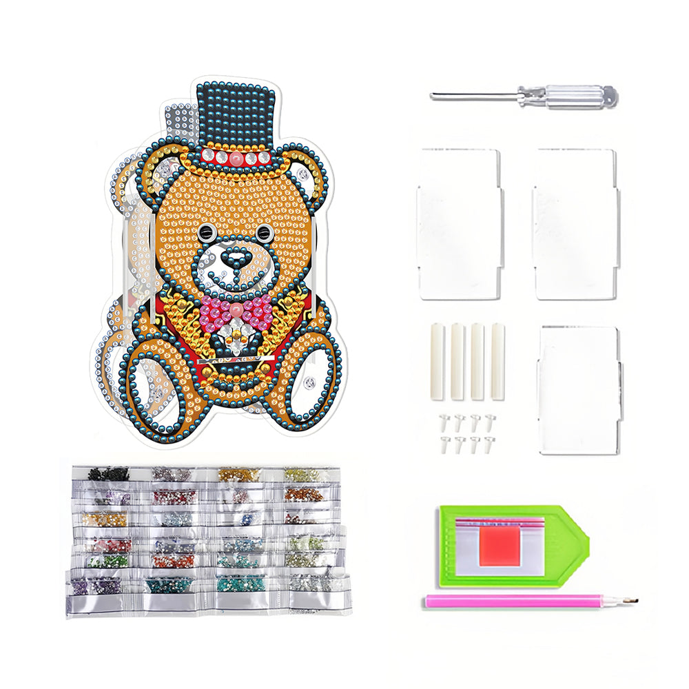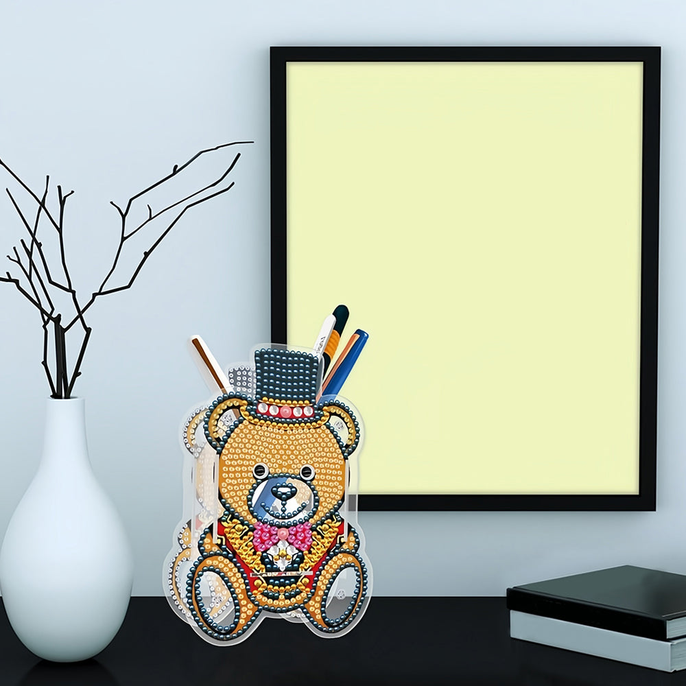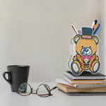 Porte-Stylo Marron Ours Avec Chapeau Broderie Diamant