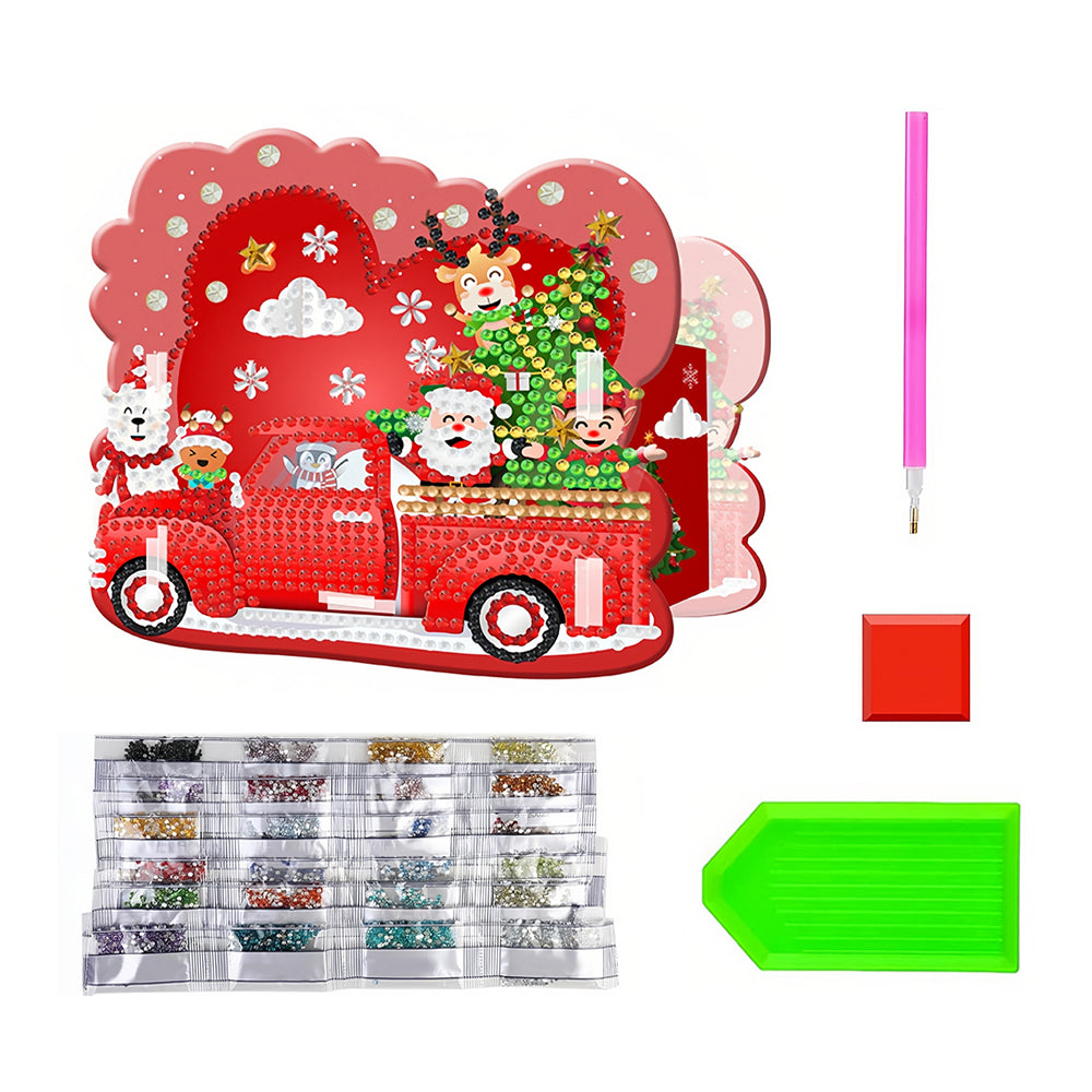 Porte-Stylo Voiture Rouge de Noël Broderie Diamant