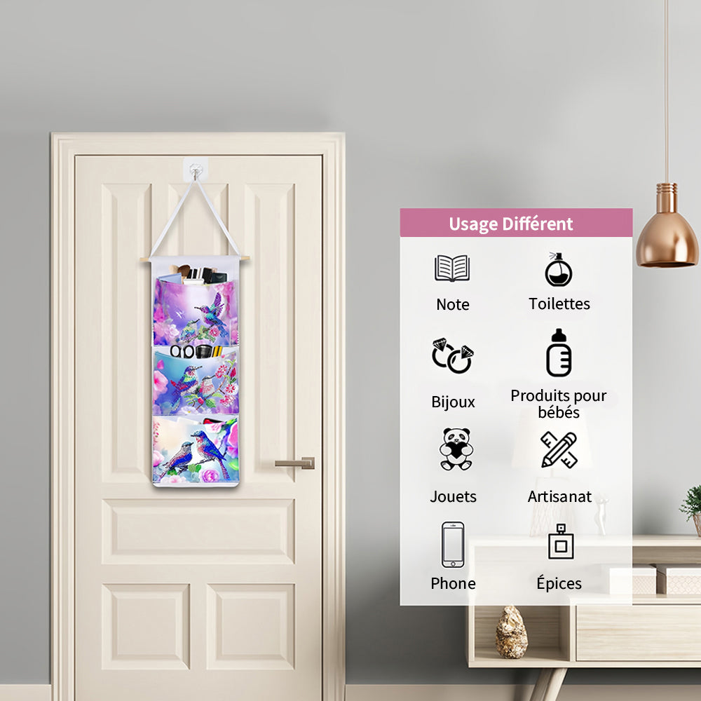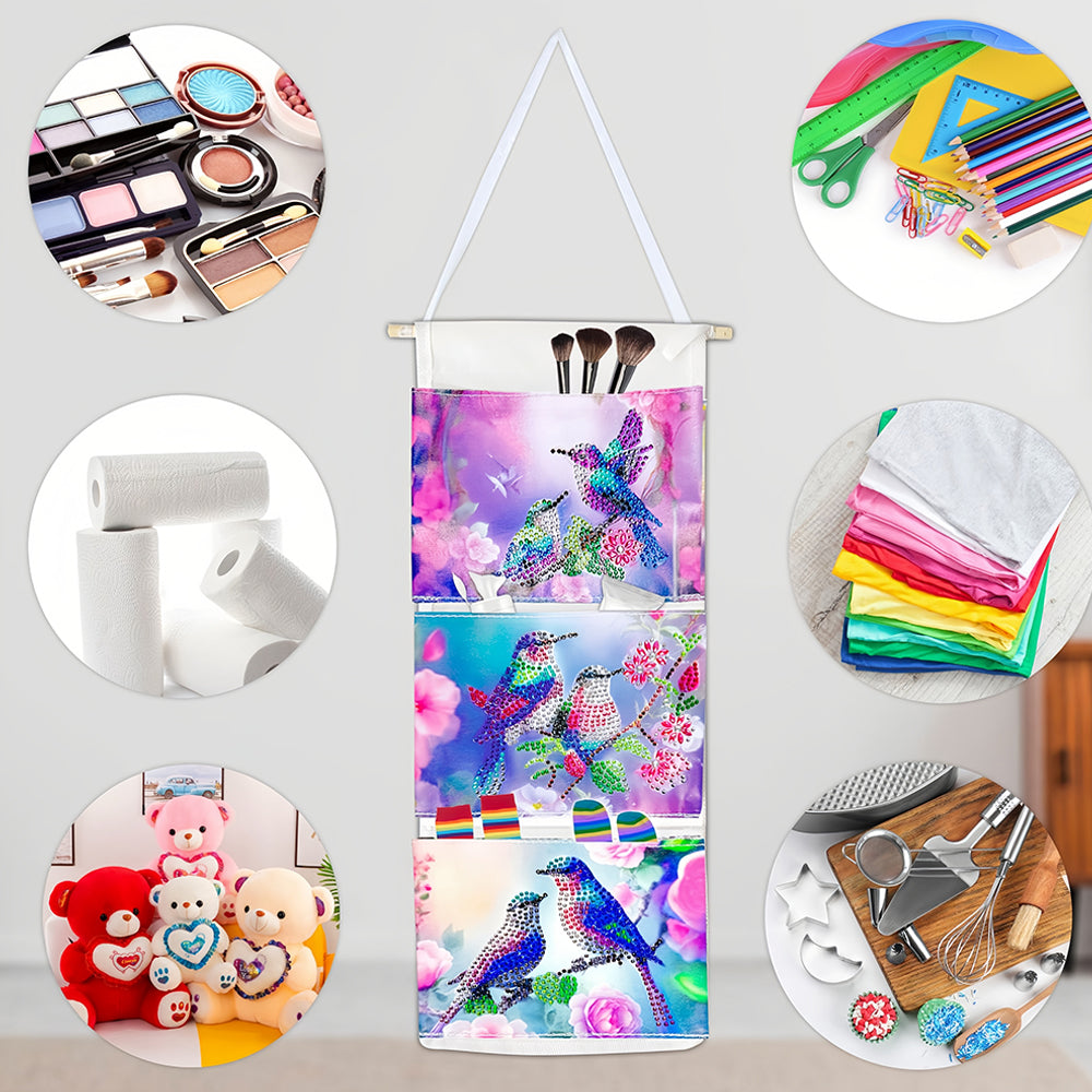 Couple d'Oiseaux Mignon Maison Organisateur Sac de Rangement Suspendu Broderie Diamant