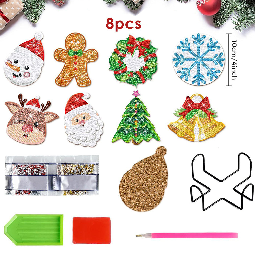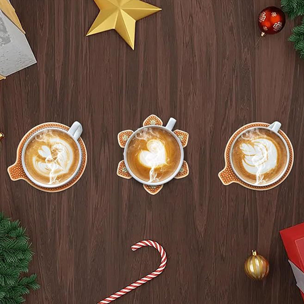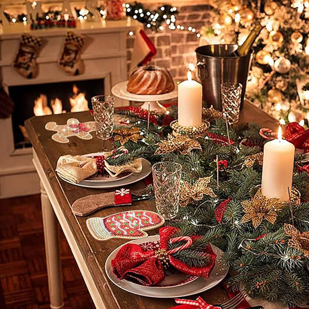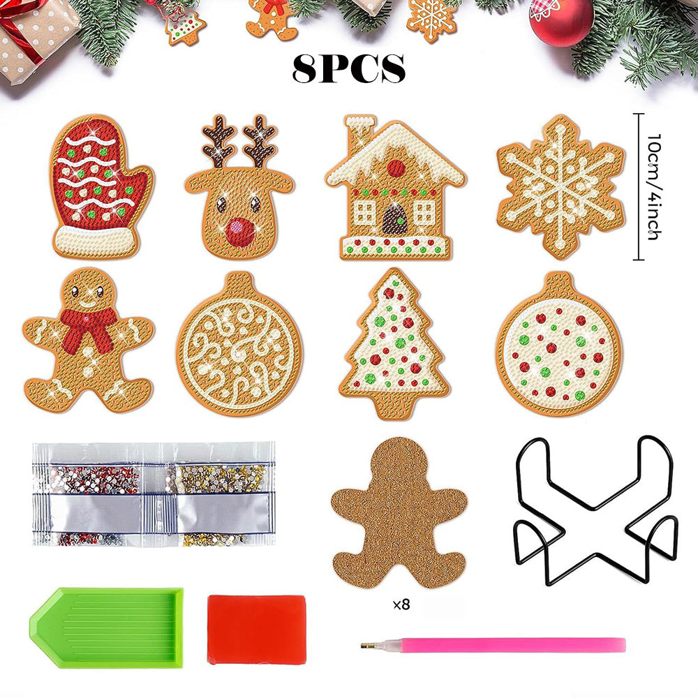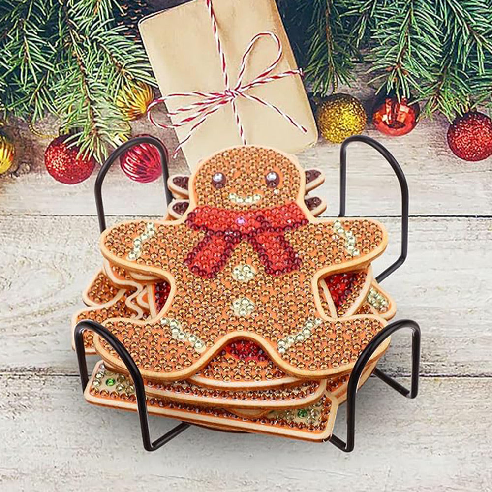 Bonhomme en Pain d’Épice de Noël Sous-tasse Broderie Diamant 8Pcs