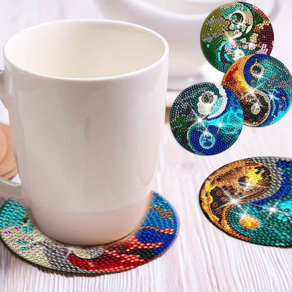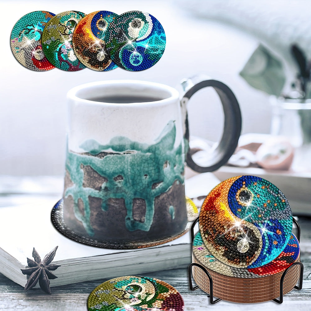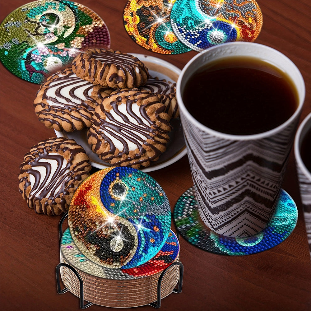 Mystérieux Tai-Chi-Yin-et-Yang Sous-tasse Broderie Diamant 8Pcs