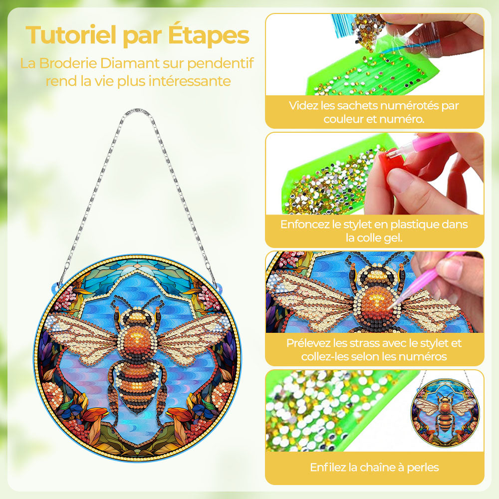 Abeille Laborieuse en Acrylique Pendentif Broderie Diamant