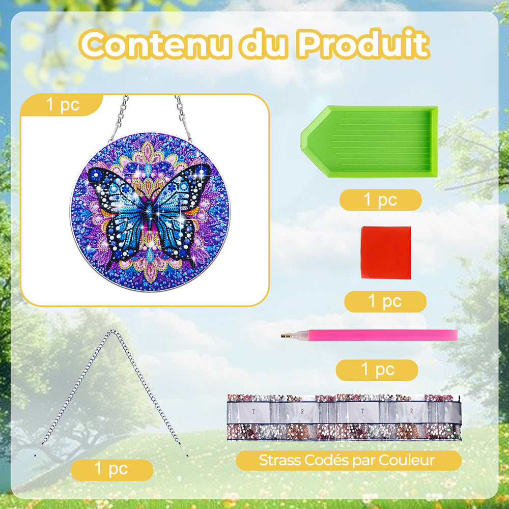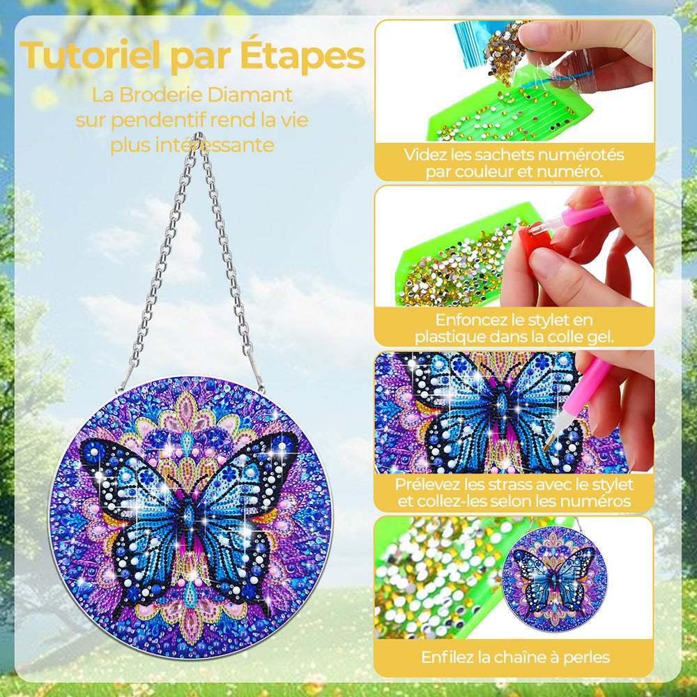 Papillon Bleu Mystérieux en Acrylique Pendentif Broderie Diamant