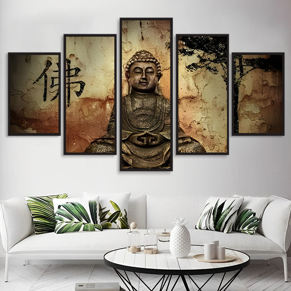 Statue Bouddhiste et le Caractère Chinois de Bouddha 5 Partie Broderie Diamant