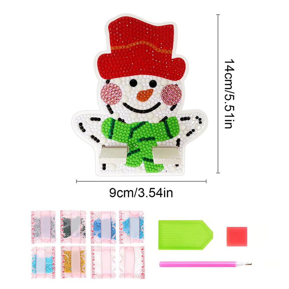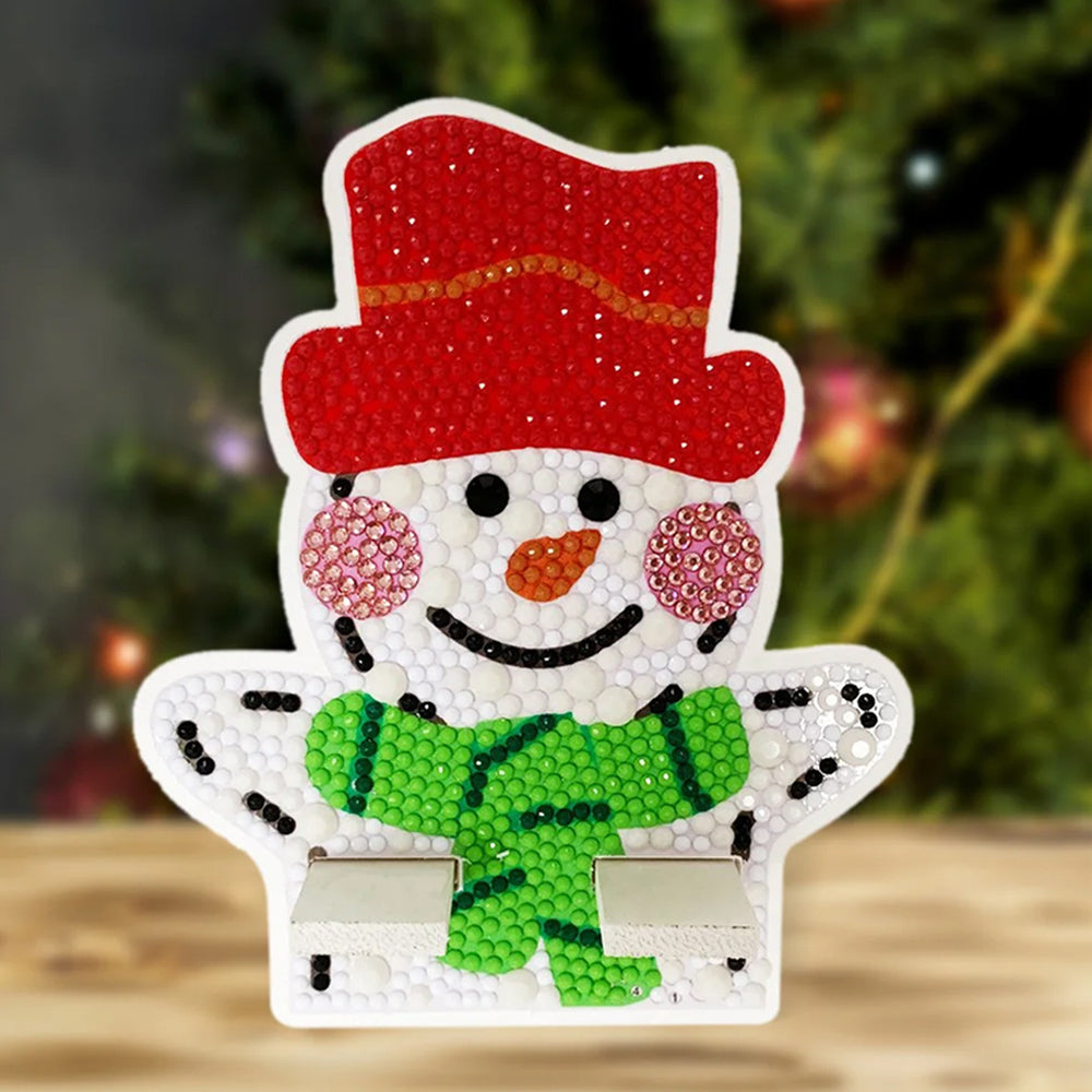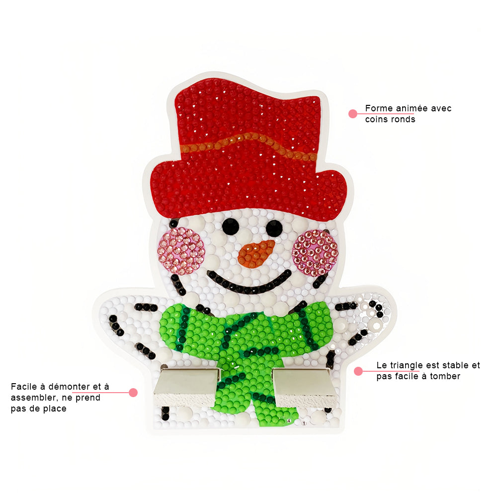 Support Résiné pour Phone Portable Bonhomme de Neige de Noël Mignon Broderie Diamant