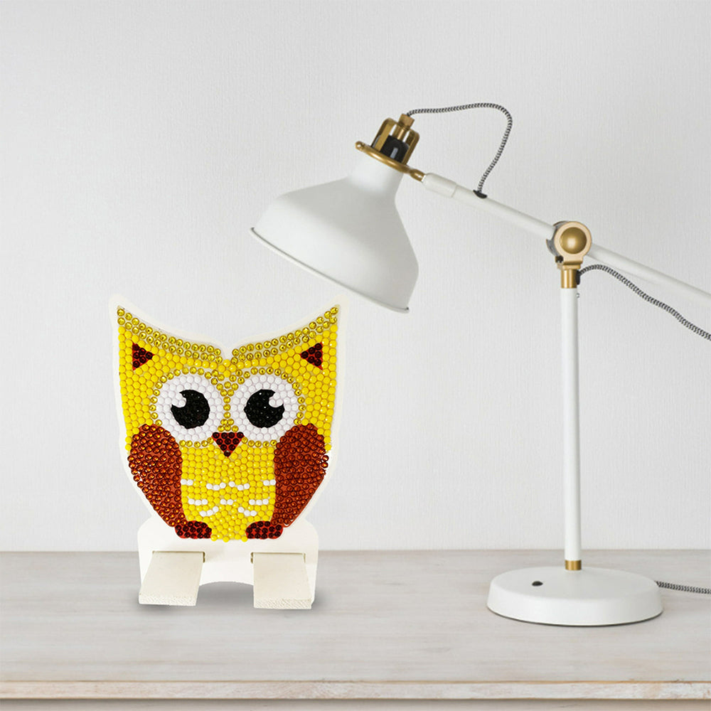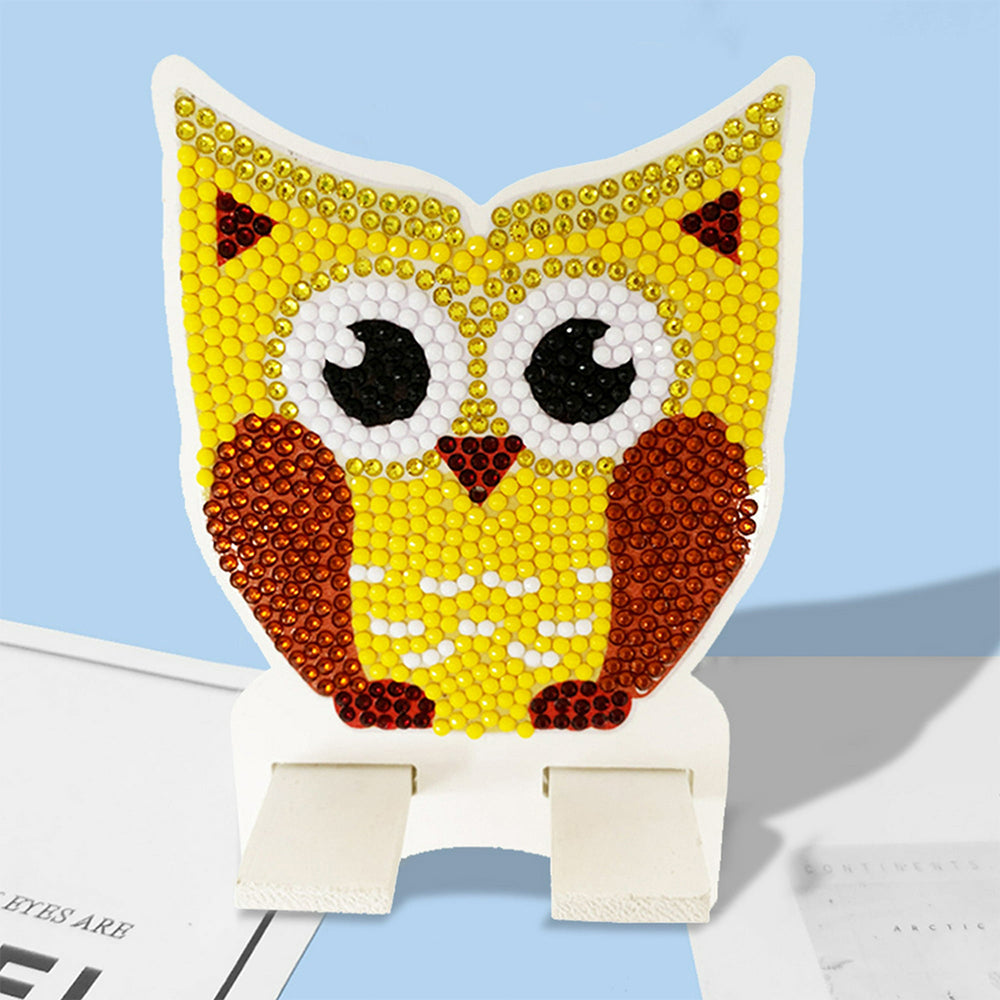 Support Résiné pour Phone Portable Hibou Jaune Mignon Broderie Diamant