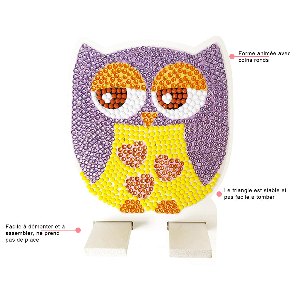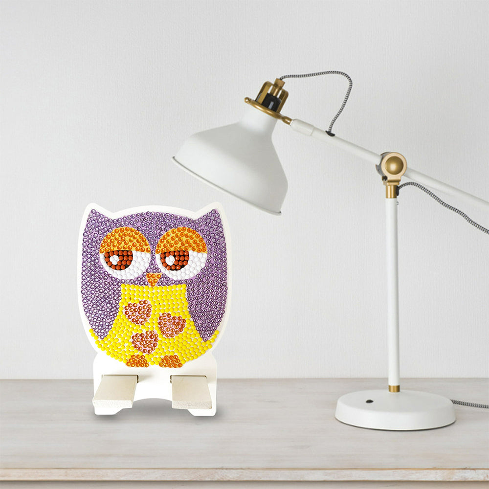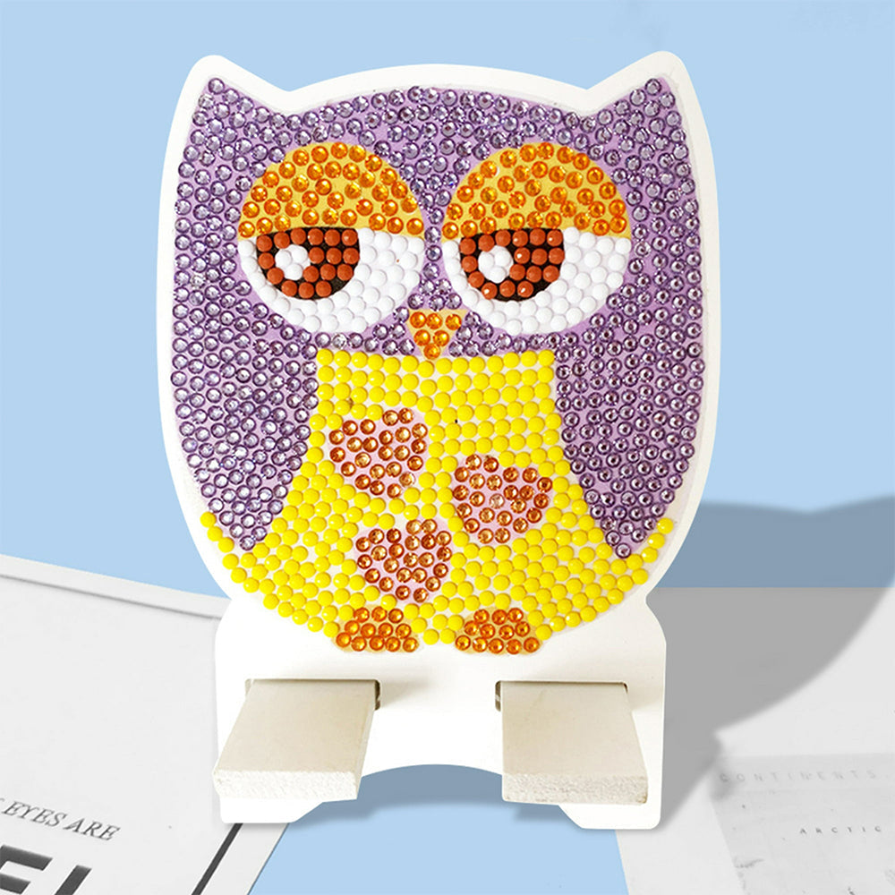 Support Résiné pour Phone Portable Hibou Violet Mignon Broderie Diamant