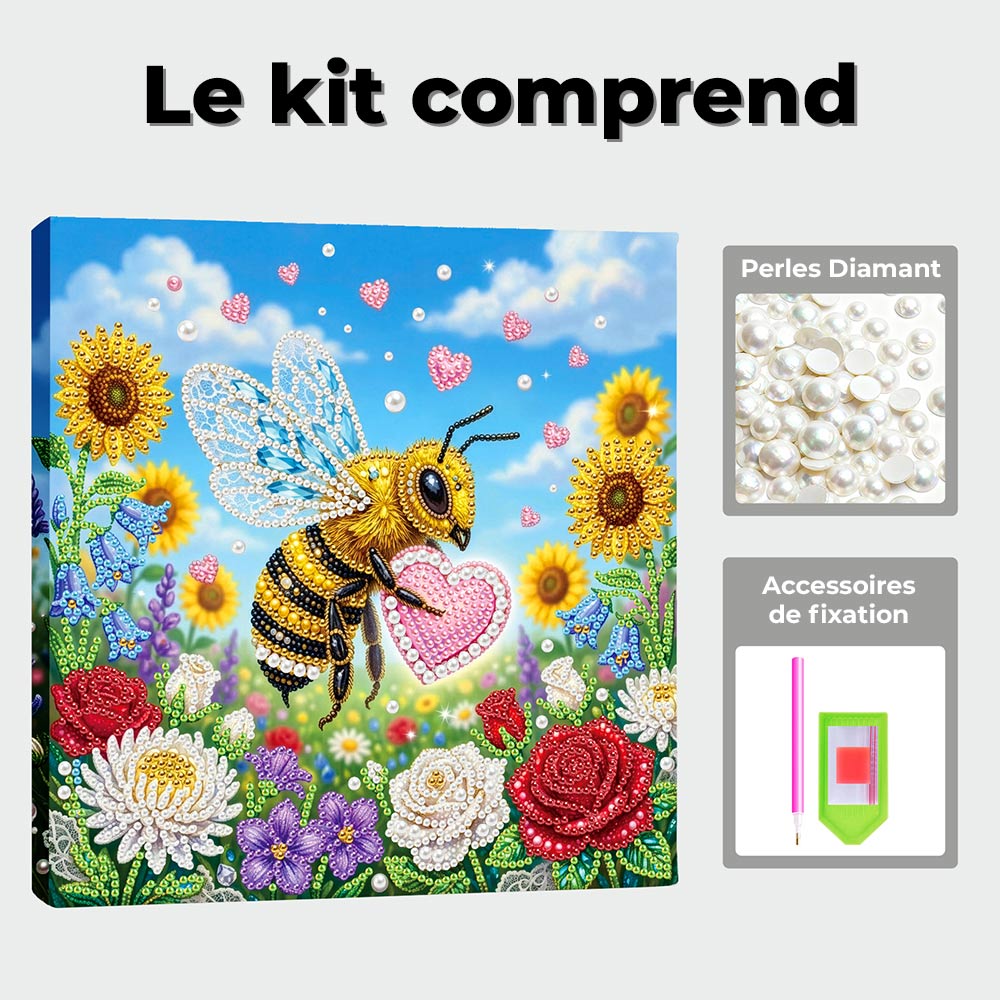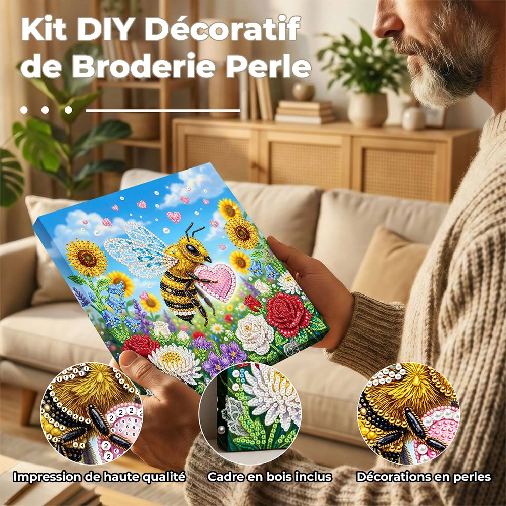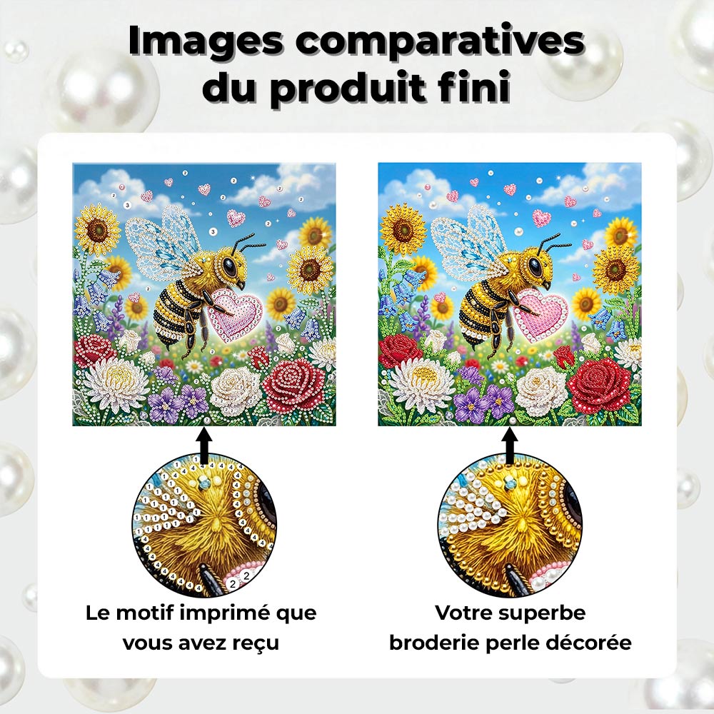 Broderie Diamant | Broderie Perle | Abeille dans un Buisson Fleuri
