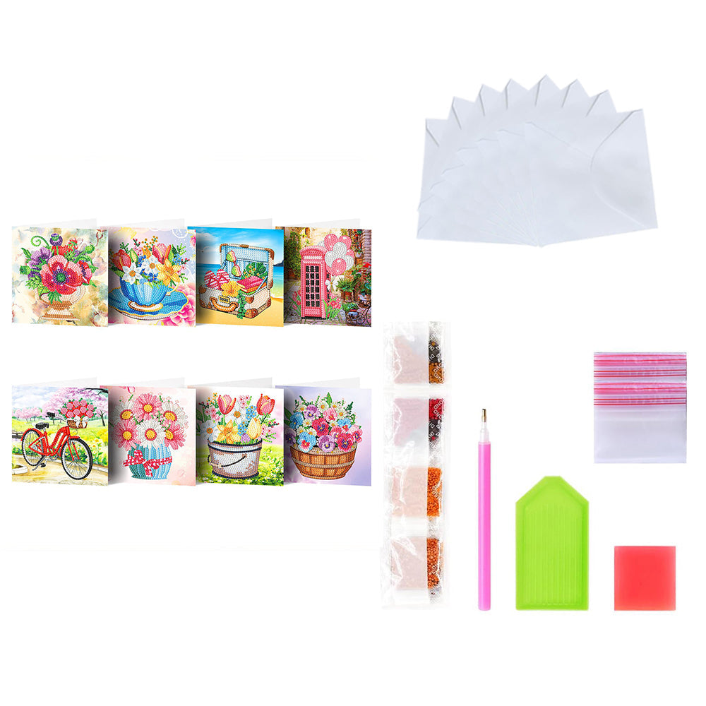 Cartes de Vœux Bicyclette et Fleurs | 8 Pièces