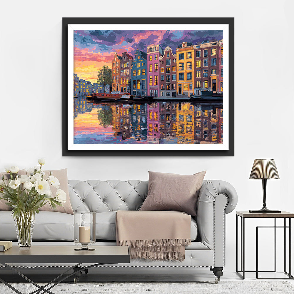 Maisons sur les Canaux d'Amsterdam Broderie Diamant