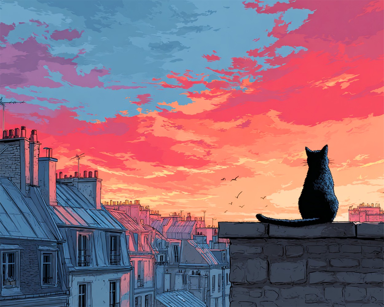 Un Chat Noir Solitaire dans la Ville Broderie Diamant