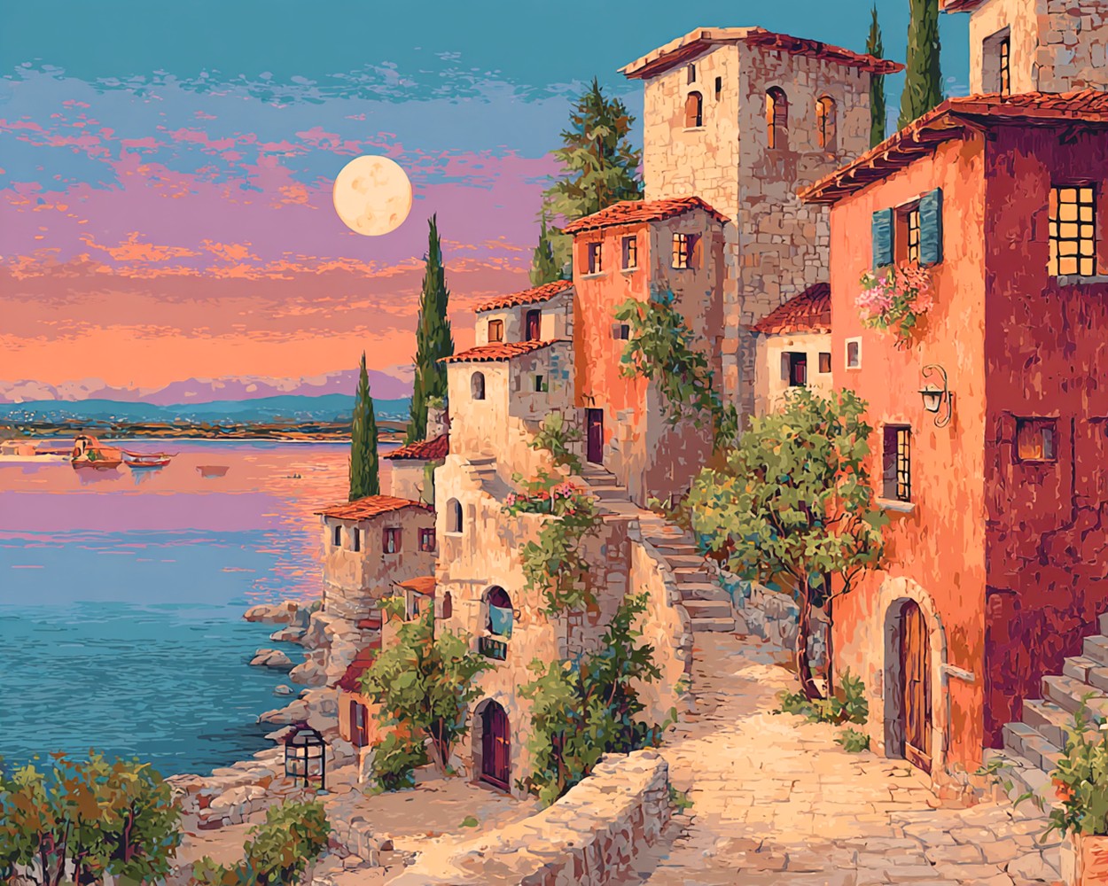 Villages Côtiers Tranquilles de la Méditerranée Broderie Diamant