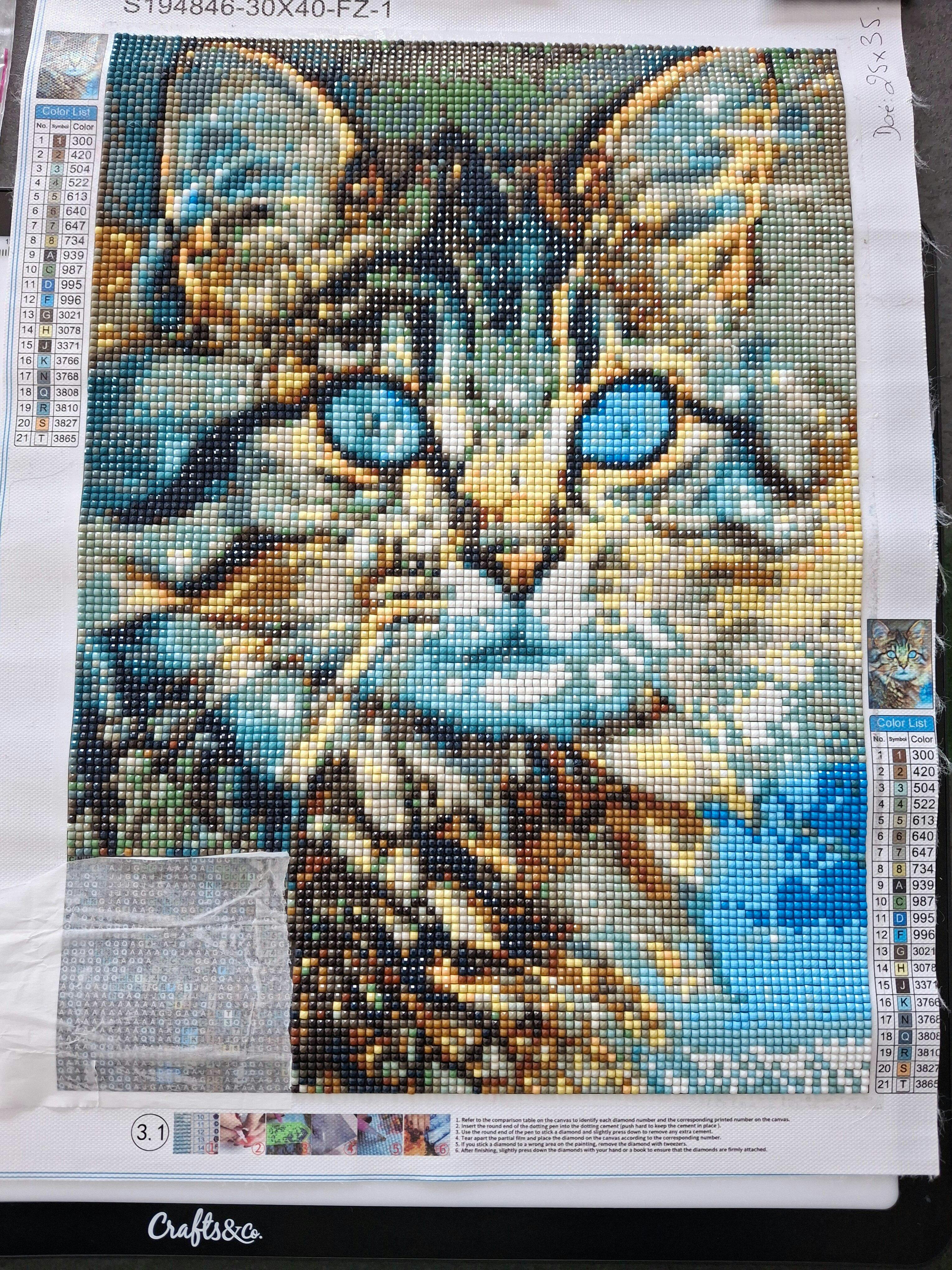 Chat Doré aux Yeux Bleus Broderie Diamant